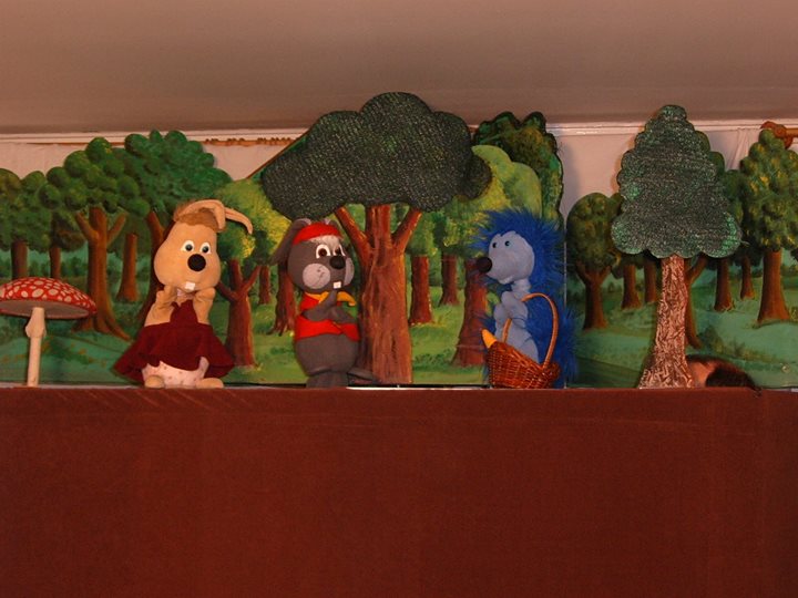 Hagyományos paravános bábjáték, kedves és szép bábok.